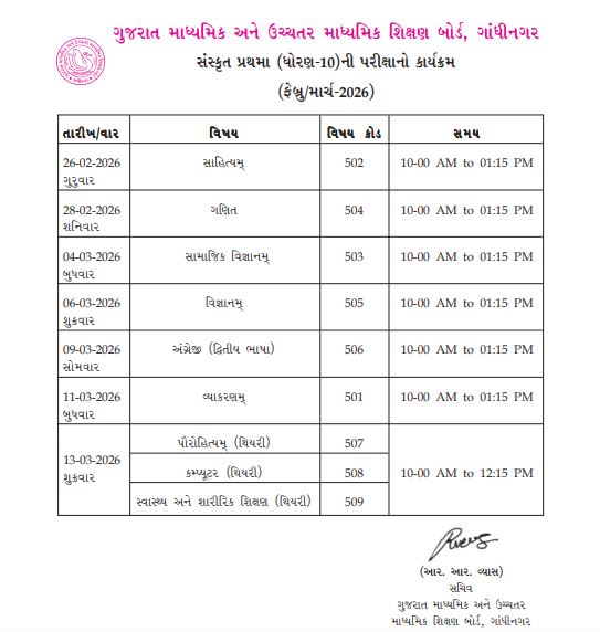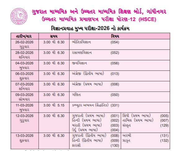 ગુજરાતમાં થોડા જ સમયમાં બોર્ડની પરીક્ષાઓ શરૂ થઈ રહી છે. ગુજરાત માધ્યમિક અને ઉચ્ચતર માધ્યમિક શિક્ષણ બોર્ડ દ્વારા ધોરણ 10 અને ધોરણ 12ની બોર્ડની પરીક્ષાનું ટાઈમટેબલ જાહેર કરી દેવામાં આવ્યું છે. 26 ફેબ્રુઆરીથી ધોરણ 10 અને 12ની બોર્ડની પરીક્ષાઓ શરૂ થવાની છે.