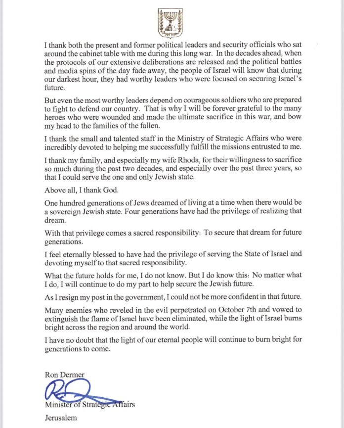 “મને ખબર નથી કે હું ભવિષ્યમાં શું કરીશ, પણ મને એક વાત ચોક્કસ ખબર છે. હું જે પણ કરીશ, હું યહૂદી લોકોના ભવિષ્યને સુરક્ષિત કરવામાં યોગદાન આપવાનું ચાલુ રાખીશ,” ડર્મરે પત્રમાં લખ્યું.